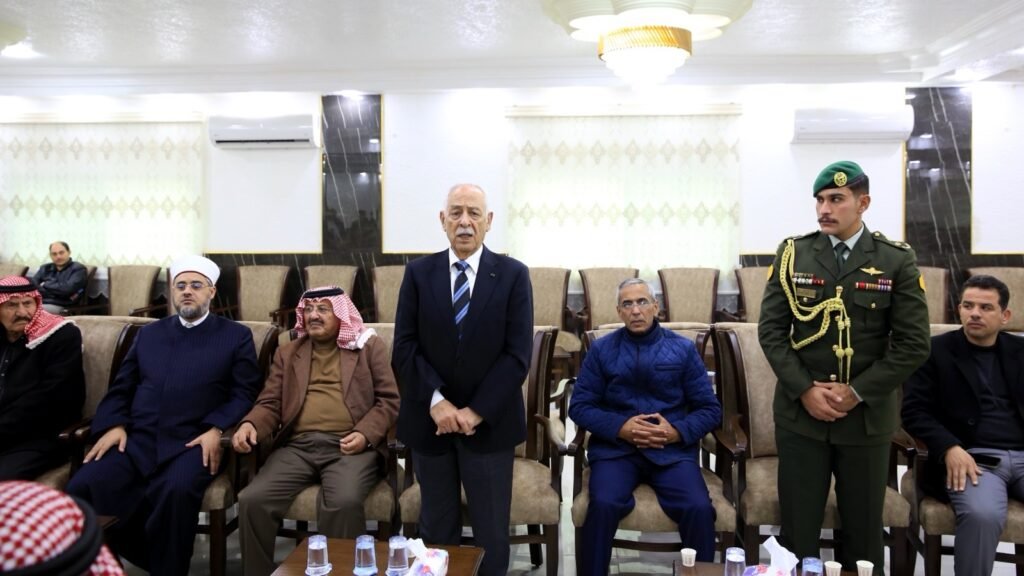 عمان4 كانون الثاني 2025- مندوبا عن جلالة الملك عبدالله الثاني، وسمو الأمير الحسين بن عبدالله الثاني، ولي العهد، قدم رئيس الديوان الملكي الهاشمي يوسف حسن العيسوي، اليوم السبت، واجب العزاء إلى عشيرتي العوايشة والزعبي وآل نصر.